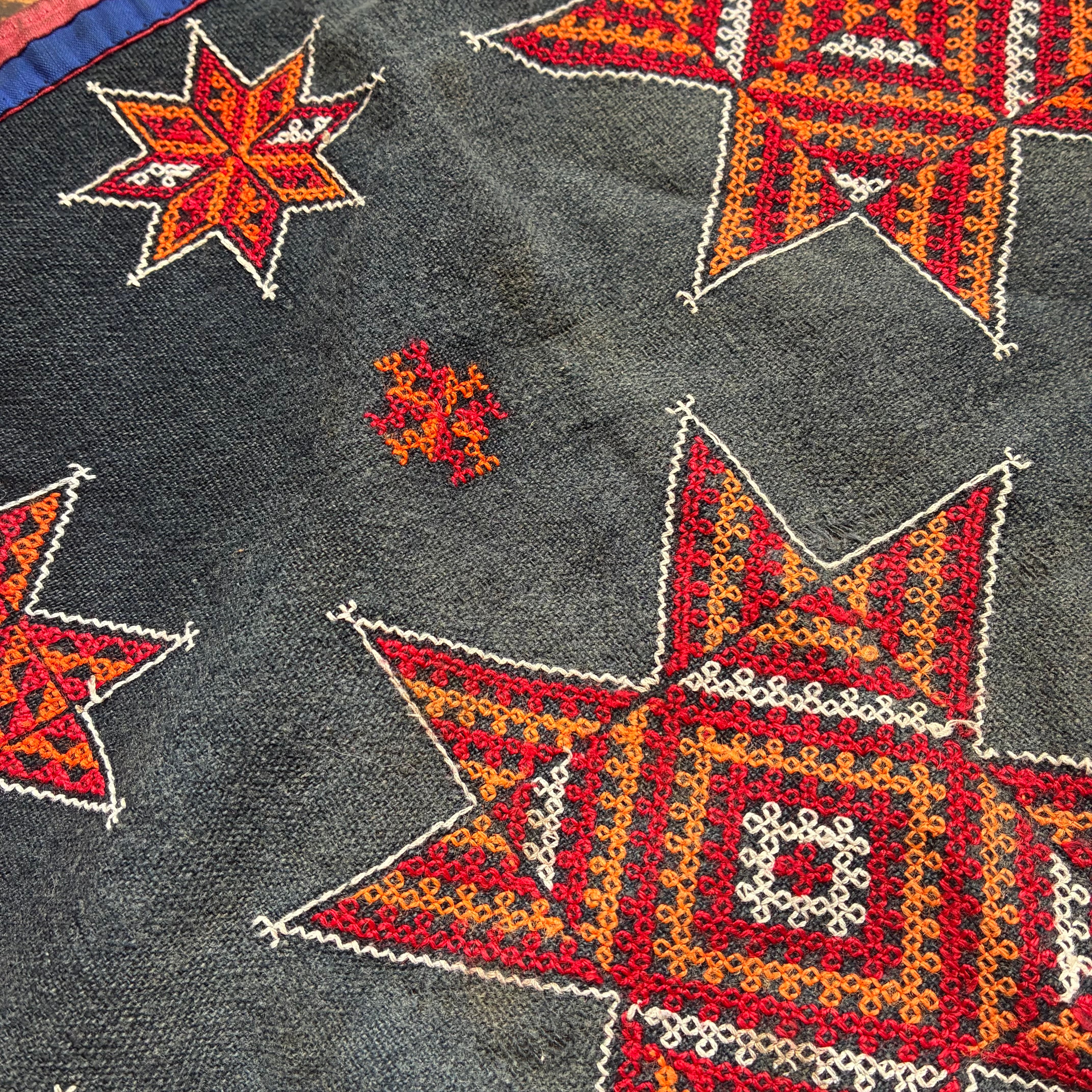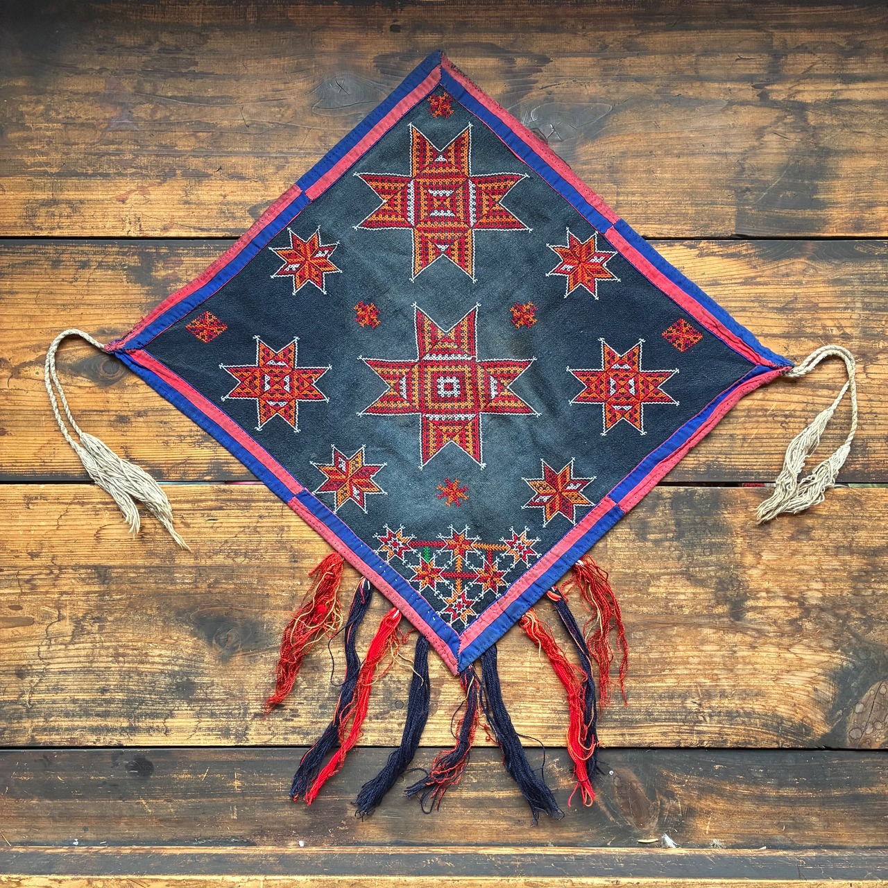 現地で普段使いとして使われていた布のため生地、刺繍の損傷、色あせなどがありますが、風合いの豊かな味のある布です。